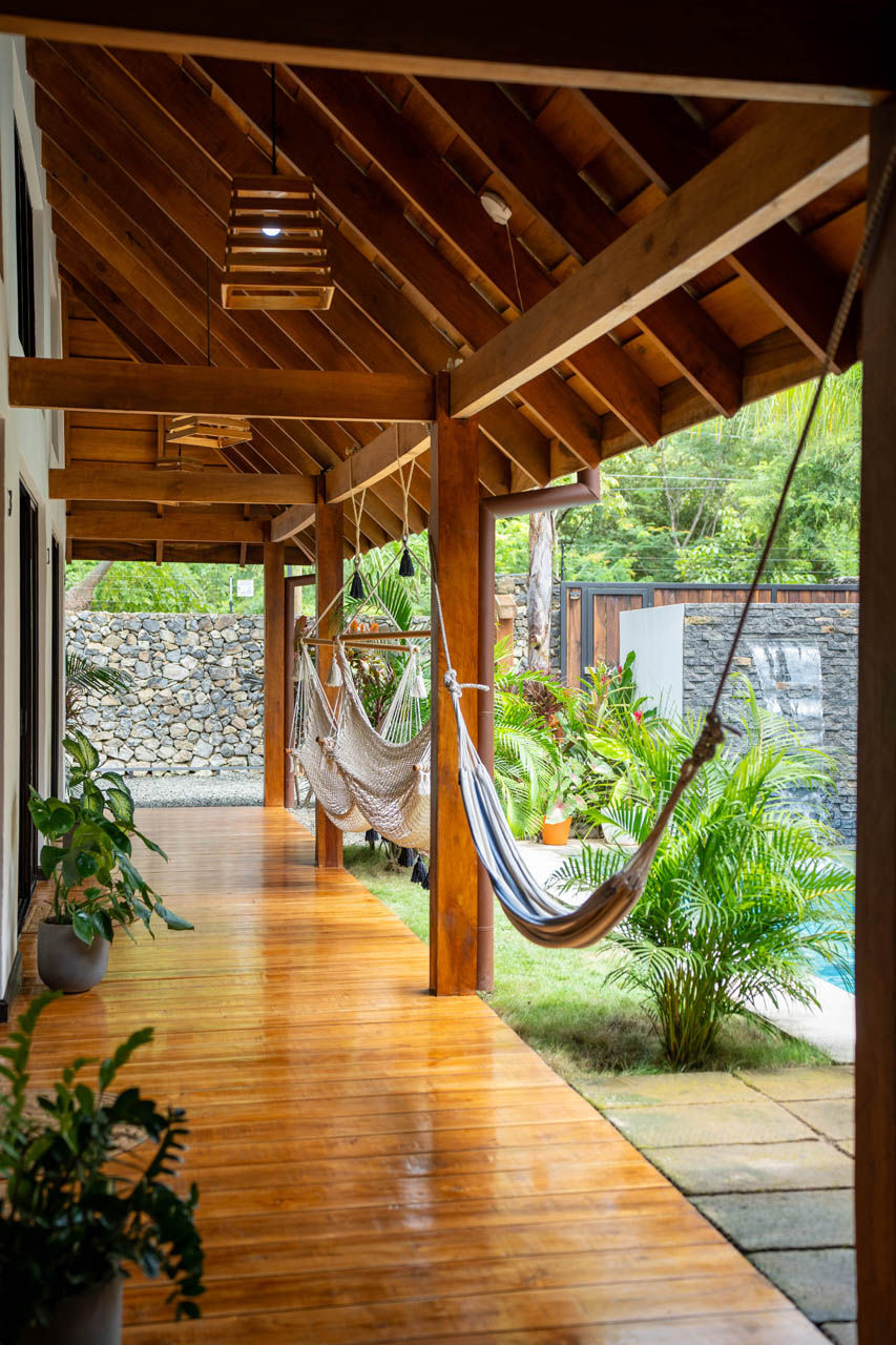 We offer six guest rooms of varying sizes and bed configurations at our private and intimate bed & breakfast. Each room showcases locally handcrafted wooden furniture and complementing contemporary decor to create an inviting ambiance. Our ensuite bathrooms each feature a walk-in shower with both rainfall shower heads and handheld shower heads, eco-friendly toiletries from Costa Rican brand Florex, and in-toilet bidets. Each room is also equipped with modern amenities such as an air conditioning unit, ceiling fan, and laptop-sized safe. Housekeeping service is offered for stays of 4+ nights.
